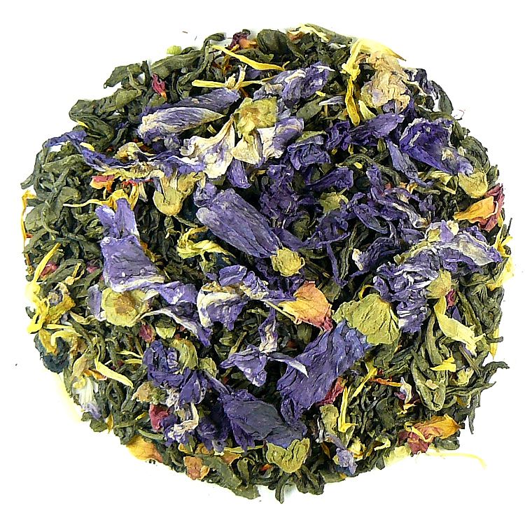 🧾 Składniki: Yunnan OP green, kwiat ślazu, płatki róży, bławatek czerwony, nagietek, aromat