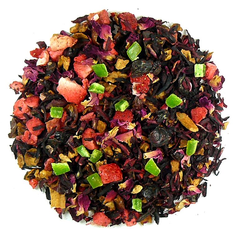 🧾 Składniki: hibiskus, jabłko, skórka róży, płatki róży, truskawka liofilizowana, cytryna zielona kandyzowana, aromat