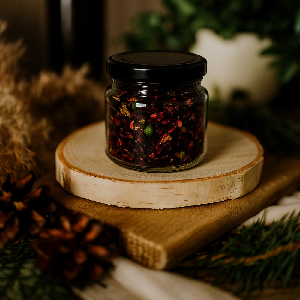 Hibiskus nadaje naparowi głęboką rubinową barwę i lekką kwaskowość, jabłko wnosi naturalną słodycz, a płatki i skórka róży dodają subtelnej delikatności. Kandyzowana limonka orzeźwia, a liofilizowana truskawka przywołuje wspomnienia lata. Delikatny aromat spaja całość, czyniąc każdy łyk wyjątkowym doświadczeniem.