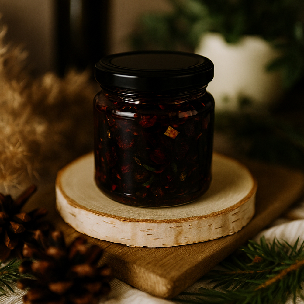Na bazie hibiskusa, z dodatkiem rodzynek, skórki róży i pomarańczy kandyzowanej, tworzy głęboki, owocowy napar o rubinowej barwie. Całość dopełniają korzenne przyprawy – anyż, cynamon i goździk – które wprowadzają do filiżanki magiczny, świąteczny klimat. To idealna herbata na chłodne dni, gdy chcesz poczuć domowy spokój i aromatyczną przytulność zimowych wieczorów. ❄️🍊